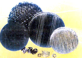 波紋規整填料及散堆填料,可采用不銹鋼、銅 、鋁、純鈦、鉬五鈦、等材質制作。在香料、農藥、精細化工、石油化工等領域得到應用。規整填料分為網孔、絲網、孔板、壓延孔板等。散堆填料主要有:金屬鮑爾環填料、金屬階梯環填料、金屬環矩鞍即金屬英特洛斯填料。